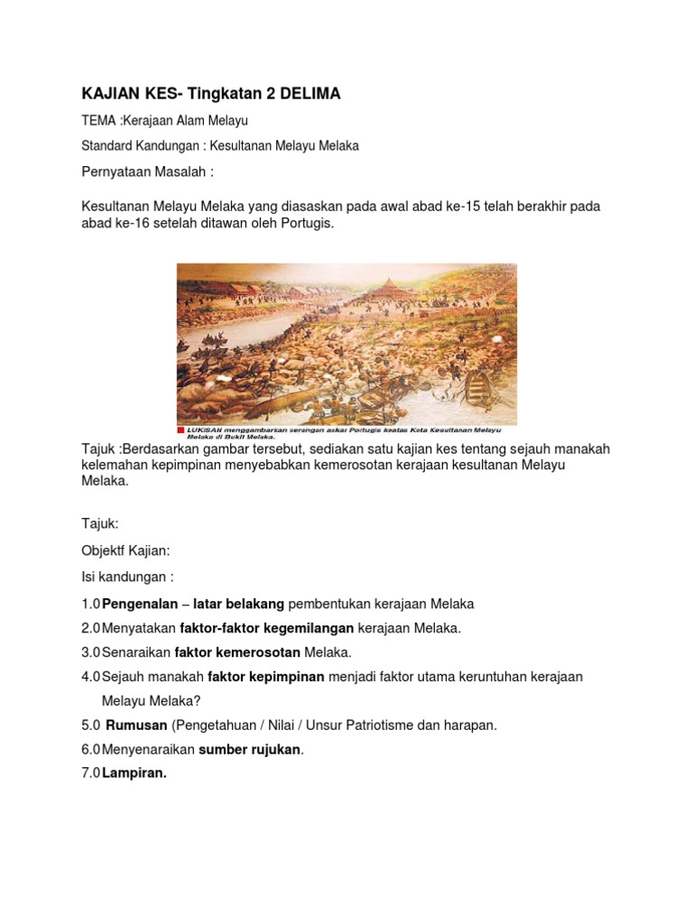 KESULTANAN MELAYU MELAKA 2 markah Pengenalan 1. 72 warisan kesultanan melayu melaka di. KAJIAN KES SEJARAH TINGKATAN 2 KESULTANAN MELAYU MELAKA Keywords.